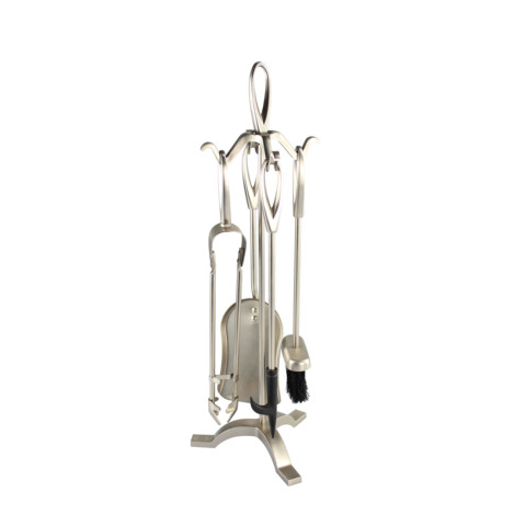 4 pezzi Set di utensili per camino accessori per camino in nichel satinato Set di strumenti per caminetto, tra cui pinze per pennelli per paletta da Poker