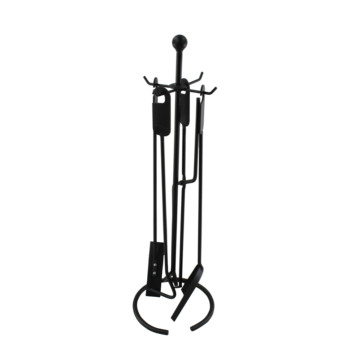 4pcs 벽난로 도구 세트 연철 벽난로 동반자 도구 세트 블랙 벽난로 액세서리